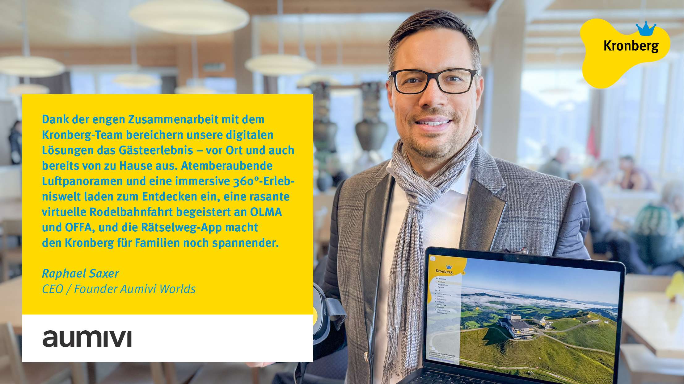 Une étape importante de l'exercice écoulé a été le changement de nom de notre entreprise : Luftseilbahn Jakobsbad-Kronberg AG est devenue Kronberg SA. Ce changement de nom nous permet de montrer clairement que tous les domaines et activités sont réunis sous un même toit. Parallèlement, nous renforçons l'identification de nos collaborateurs à l'entreprise et envoyons un signal clair pour l'orientation future de notre entreprise.